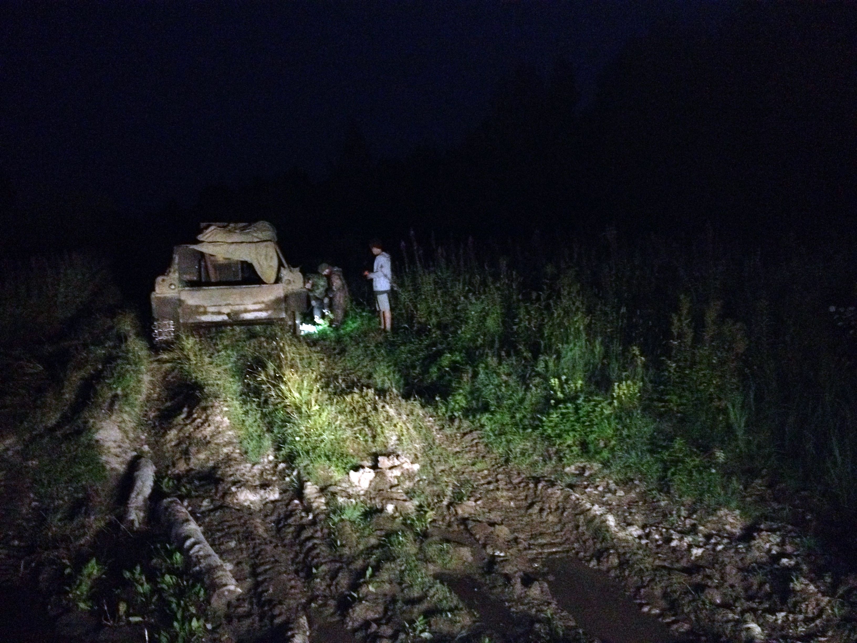 6. Дальше было 10 км ночного трофи. Гусянка один раз потеряла гусеницу, мы прошли нормально.