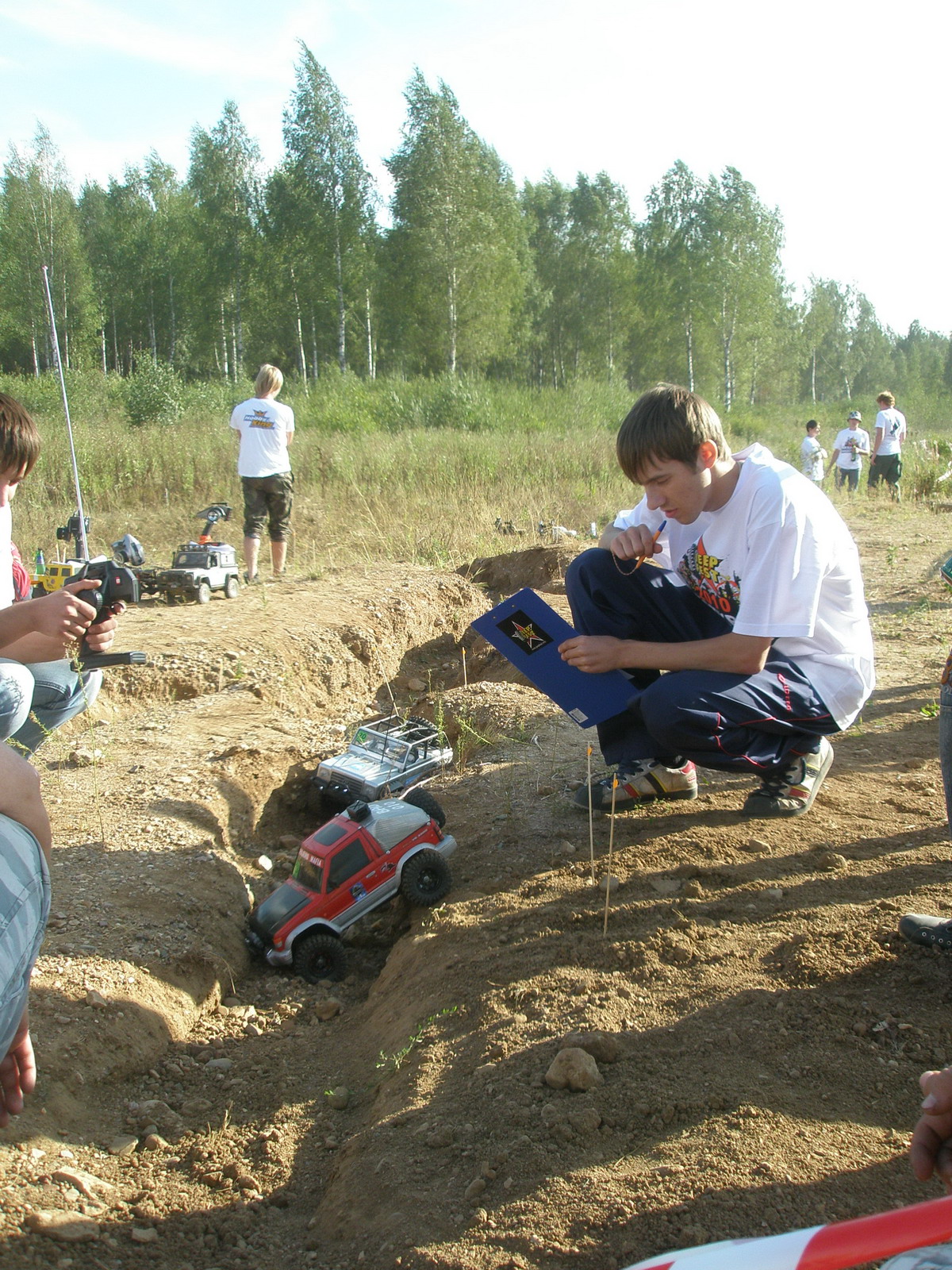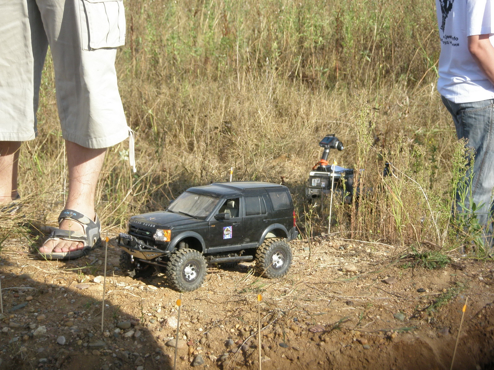 Параллельно с овощной экспедицией на мини-трассе проходили соревнования радиоуправляемых моделей внедорожников и авторских экземпляров. Удивительная трасса, созданная на основе промоин в доль дороги замечательно подходила для того, чтобы любители могли почувствовать себя джипером. :lol: Всё по-взрослому! И спуски, и подъёмы, прохождение ворот (желательно без касания), а некоторым даже приходилось лебедиться!