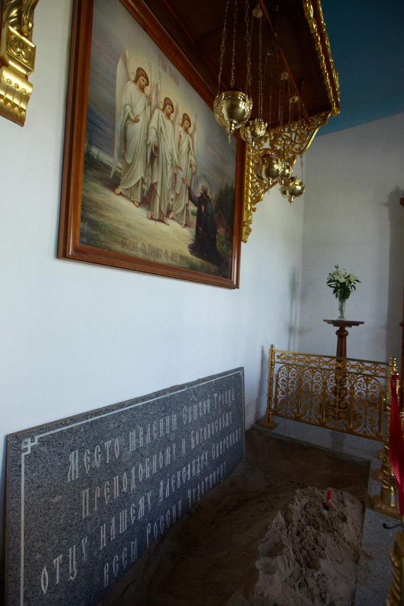 Набираем песок со святого места. Идем в Преображенский собор, прикладываемся к мощам Александра Свирского.