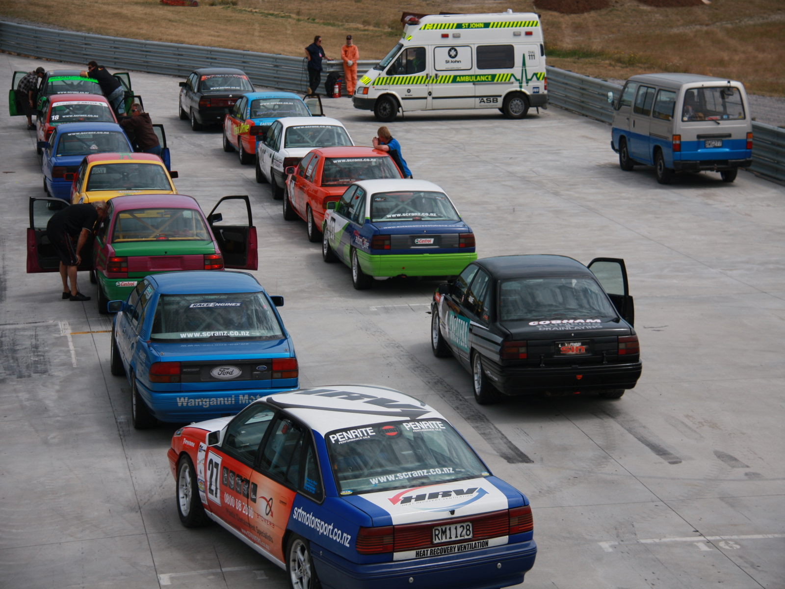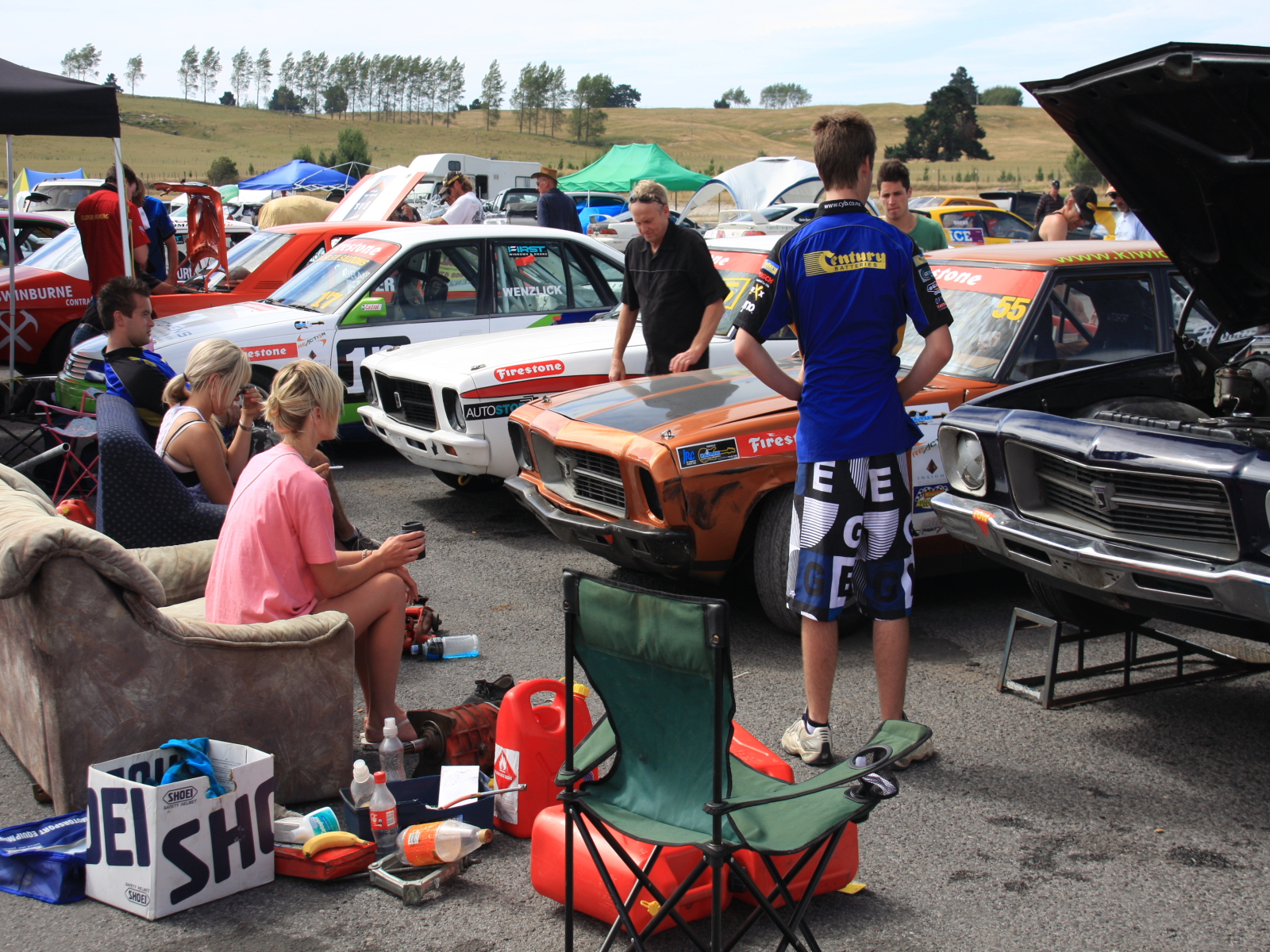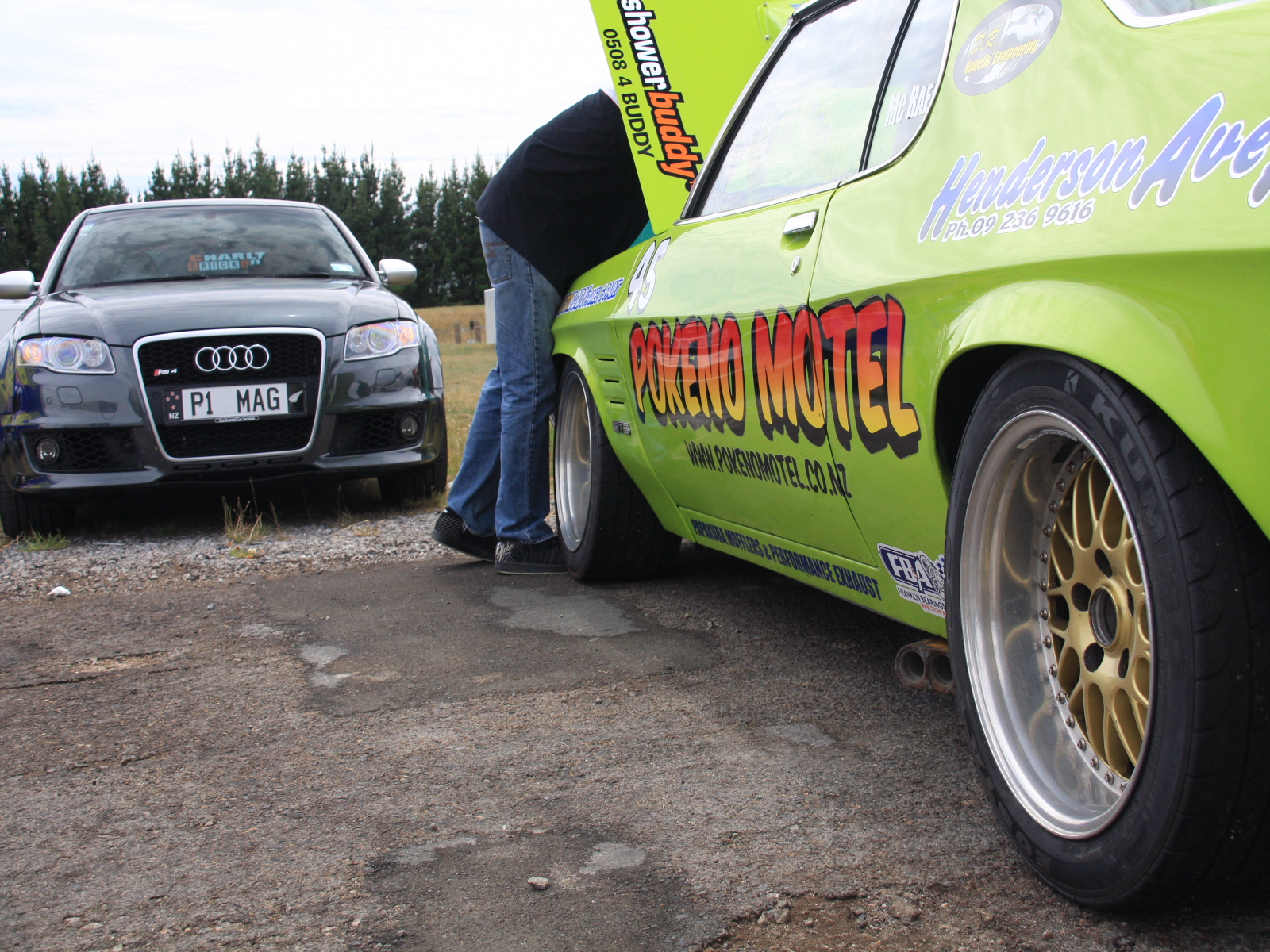 После прыжка, в Таупо решено было посетить автогонки,во ребята я вам доложу где организация и простор для слабых разумом , трек находится за городом и по размеру как трассы так и боксов впечатляет, гонки проводят два дня, в разных классах,все машины часные, в Новой Зеландии культ порше, и американских монстров с большим литражом двигателя, а так же класс мини, это очень красиво, и шумно, по техзоне можно ходить СВОБОДНО, наблюдать за работой техников,как правило это папа и дед а сан за рулем, дети бегают везде, но порядок и безопасность чувствуется везде.ОМОНа и вахтеров нет, билет на два дня стоит 14 дол с машины,заезжаешь на парковку,сколько чел в машине неважно.