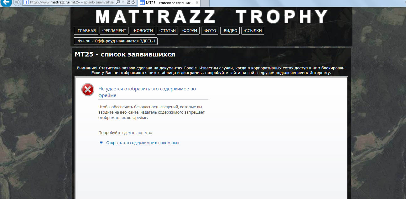 ОБЪЕДИНЕННЫЙ ФОРУМ ВНЕДОРОЖНИКОВ 4x4Вы зашли по адресу forum.mattrazz-trophy.ru |