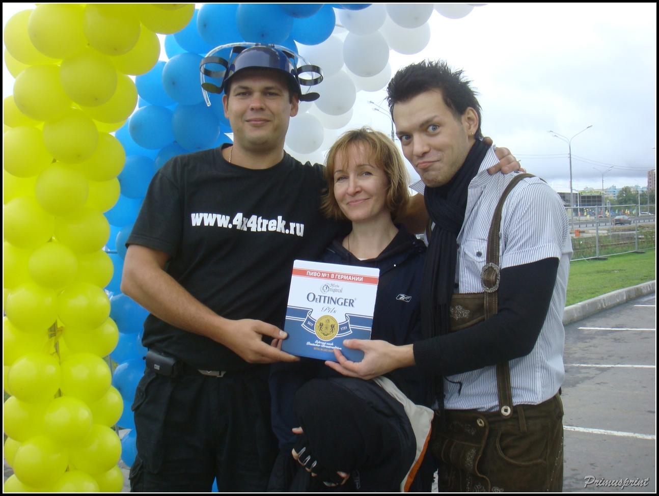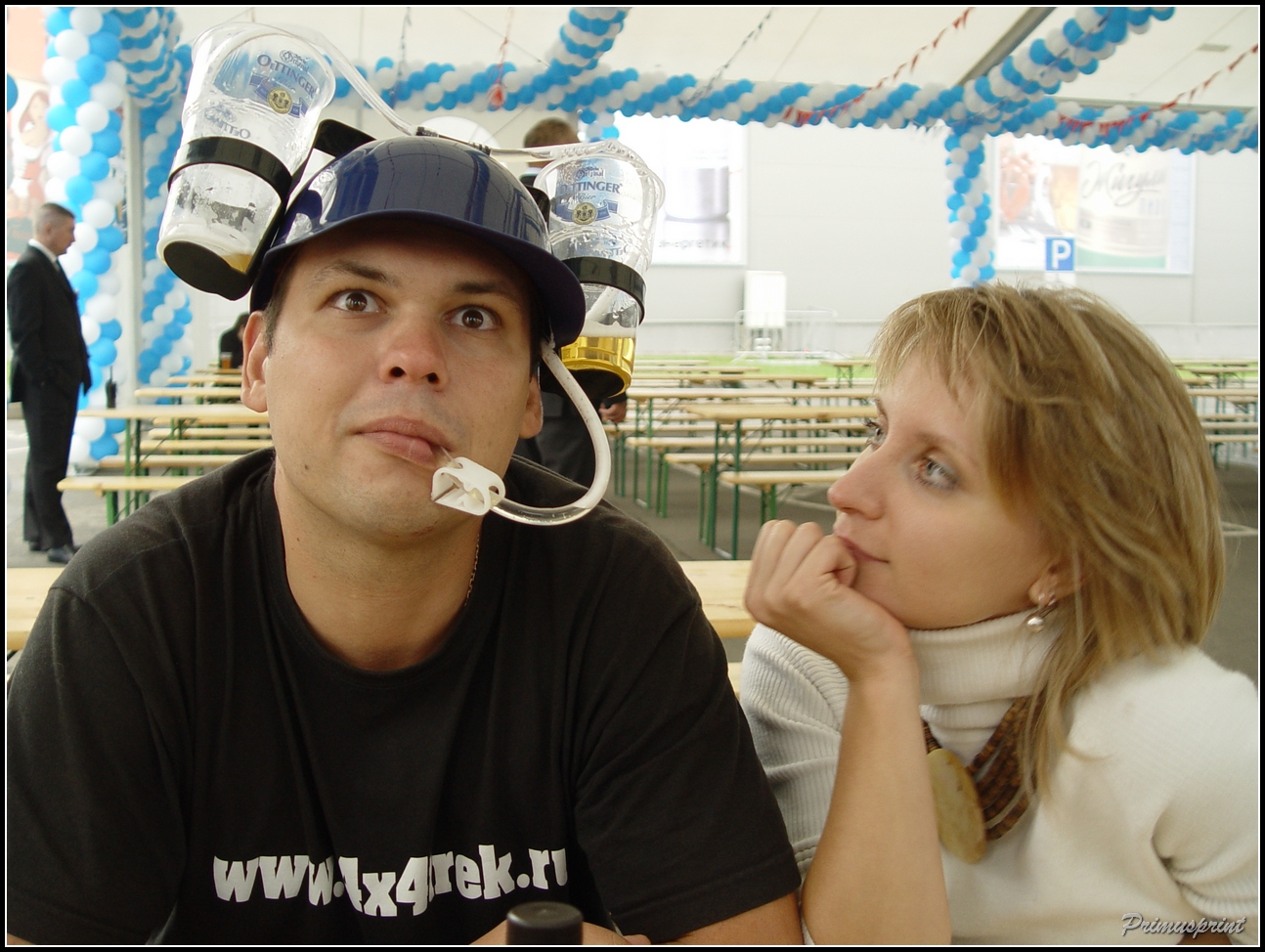 Да ладно вам на парня напраслину гнать....Это представитель оргов был....встречал всех на входе под аркой из шариков и предлагал всем лицам Женского пола поцеловаться с ним....типа на счастье. Я целовалась лично (в щечку) :oops: ......а потом призы раздавал всем победителям конкурса по питью пива на скорость. Примус - один из победителей, есс...но....куда ж без него в таком деле.