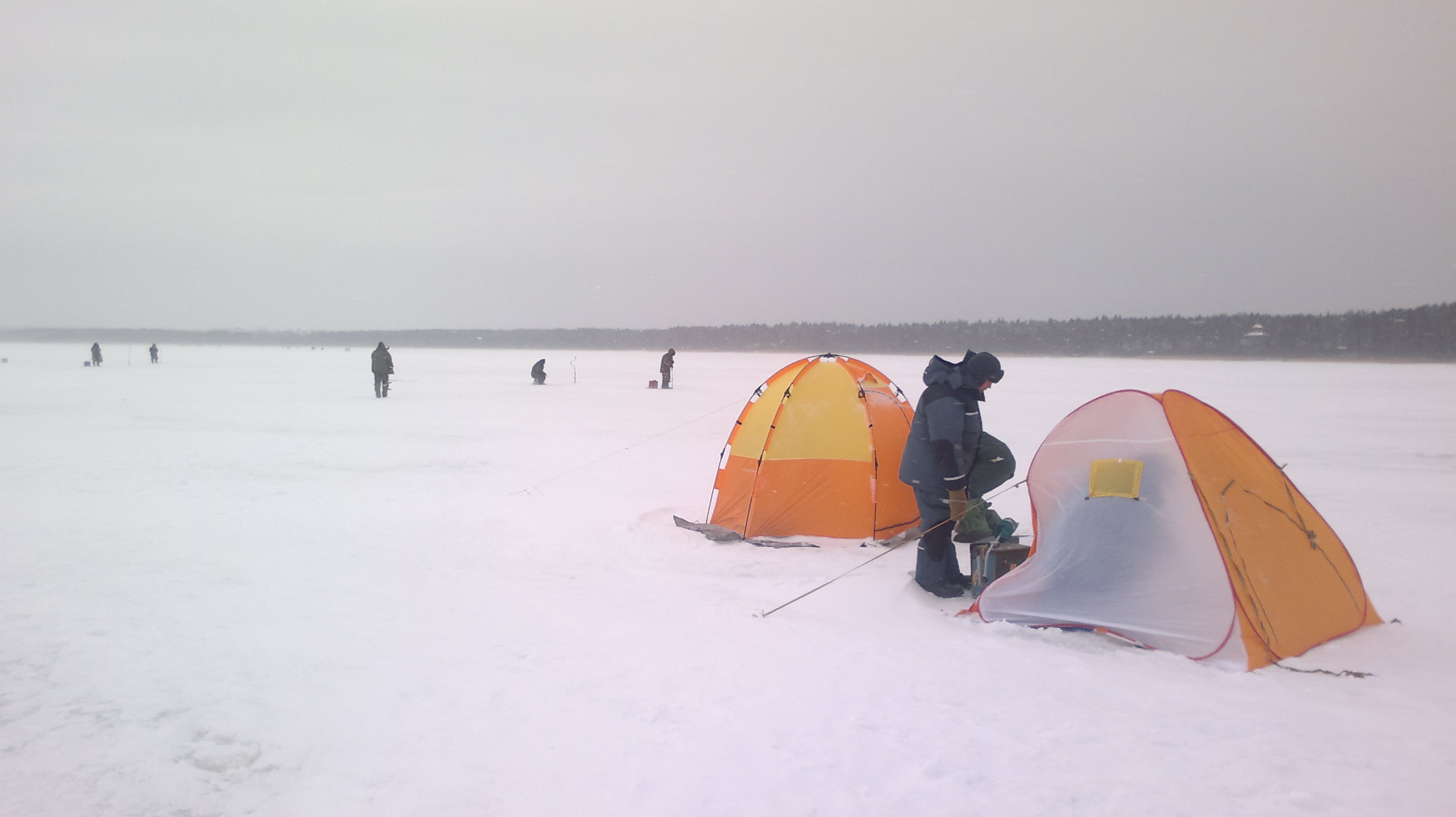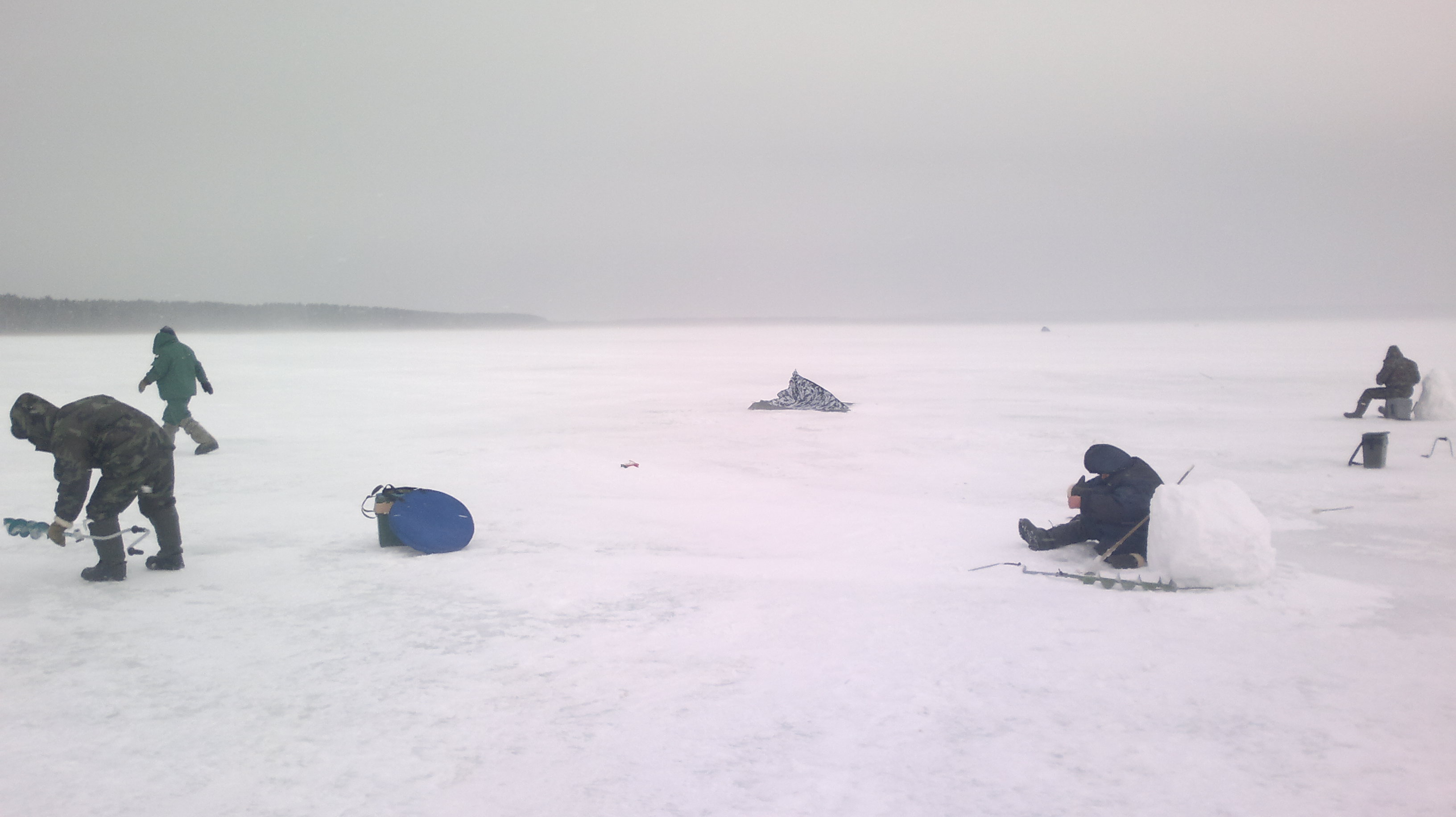 погода желала лучшего -12 -14 ветер, снег но все равно охотников зимней рыбалки с каждым часом становилось все больше и больше!