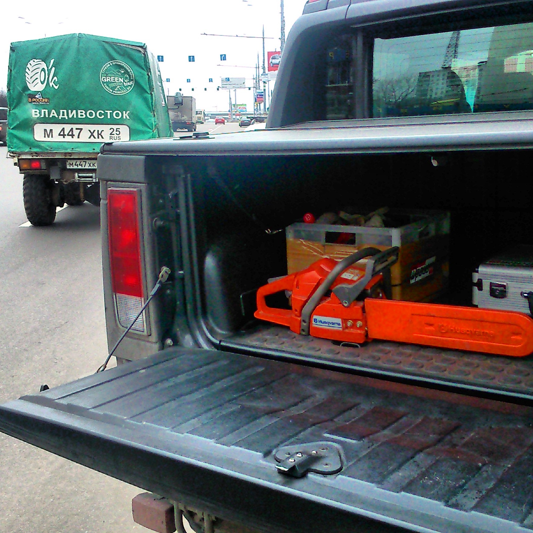 модно возить в кузове вместо биты пилу!