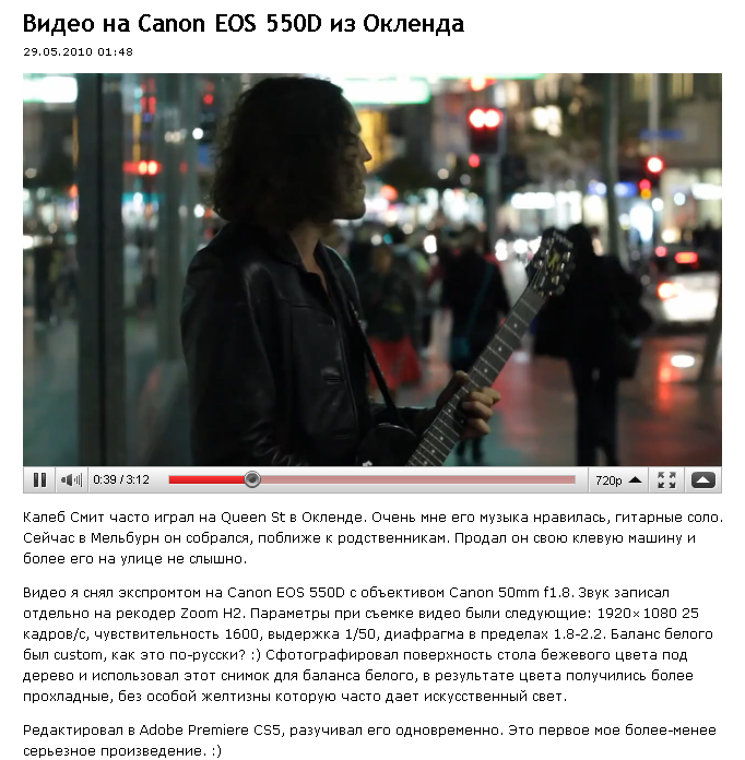 Видео на Canon EOS 550D из Окленда.