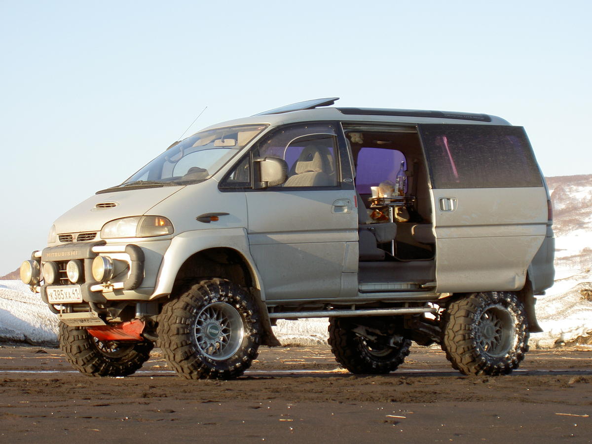 Да что там какой-то «Хаммер», здесь салон — не спартанская будка, а просторная и уютная, можно сказать круизная каюта с великолепным обзором. В ее основе — сдвоенная и «широкофюзеляжная» кабина от грузовика Isuzu Elf, соответственно, с «его» же интерьером, хотя и во многом доработанным. А вот задняя, то есть багажная часть заимствована от минивэна Noah! Чтобы состыковать ее с кабиной Elf, потребовалось расширять габарит вставками, а заднее стекло делать оригинальное. Передний ансамбль не менее интересен. Крылья изготовлены с использованием таковых от ГАЗ-3307, капот оригинального производства, радиаторная решетка — сборная из двух решеток от Prado, фары от Delica.