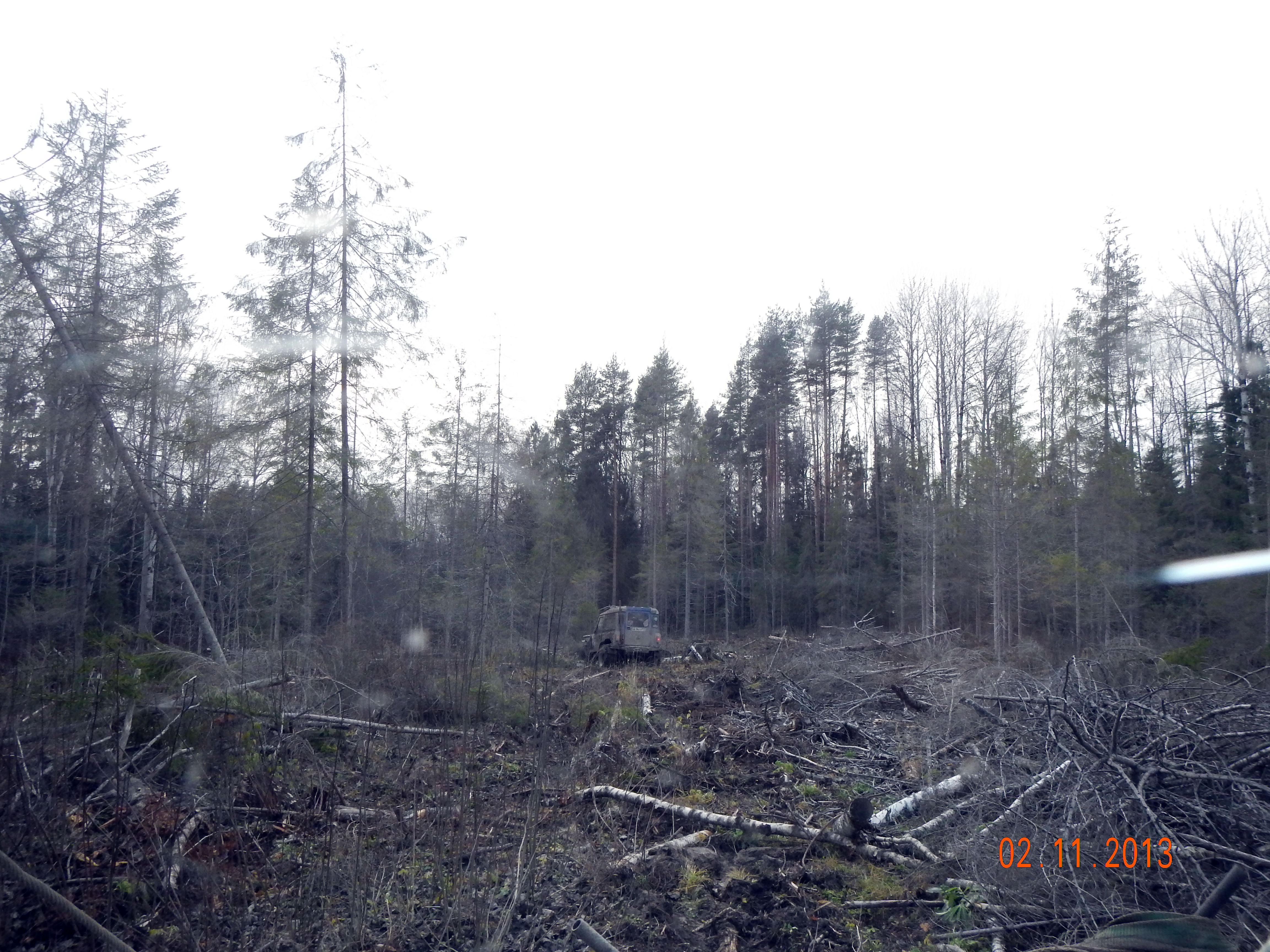 Второй день. Мы с Соусом ищем дорогу - она где-то рядом, но вырубка, мягко говоря, стремная.